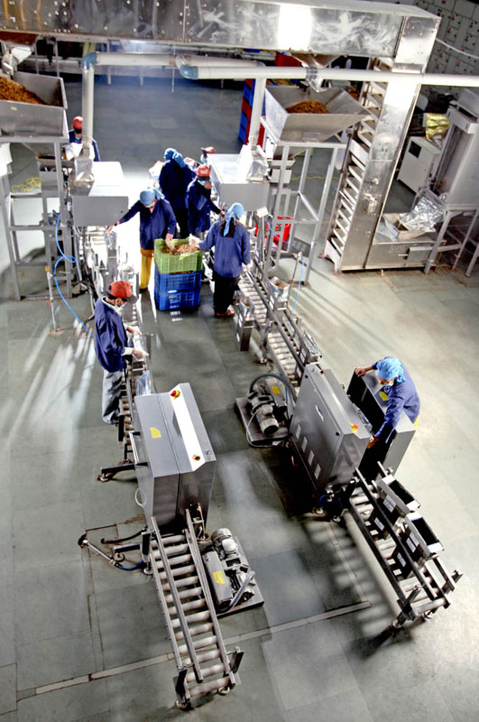 The Group has large state of the art processing units with approx 50000 sq. feet covered and 15000 sq.ft uncovered area for production. With more than Rs.30 million investment in hi tech digital LASER SORTERS, The production facilities also has automatic packaging machines, in-house laboratory and cold storages. |